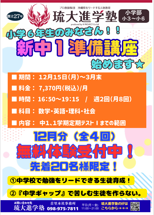 【新中1準備講座】スタートのお知らせ